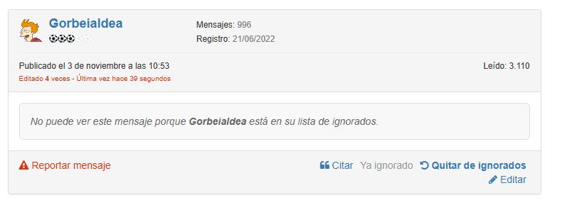 Post de usuario ignorado filtrado aplicado