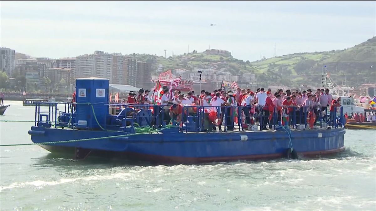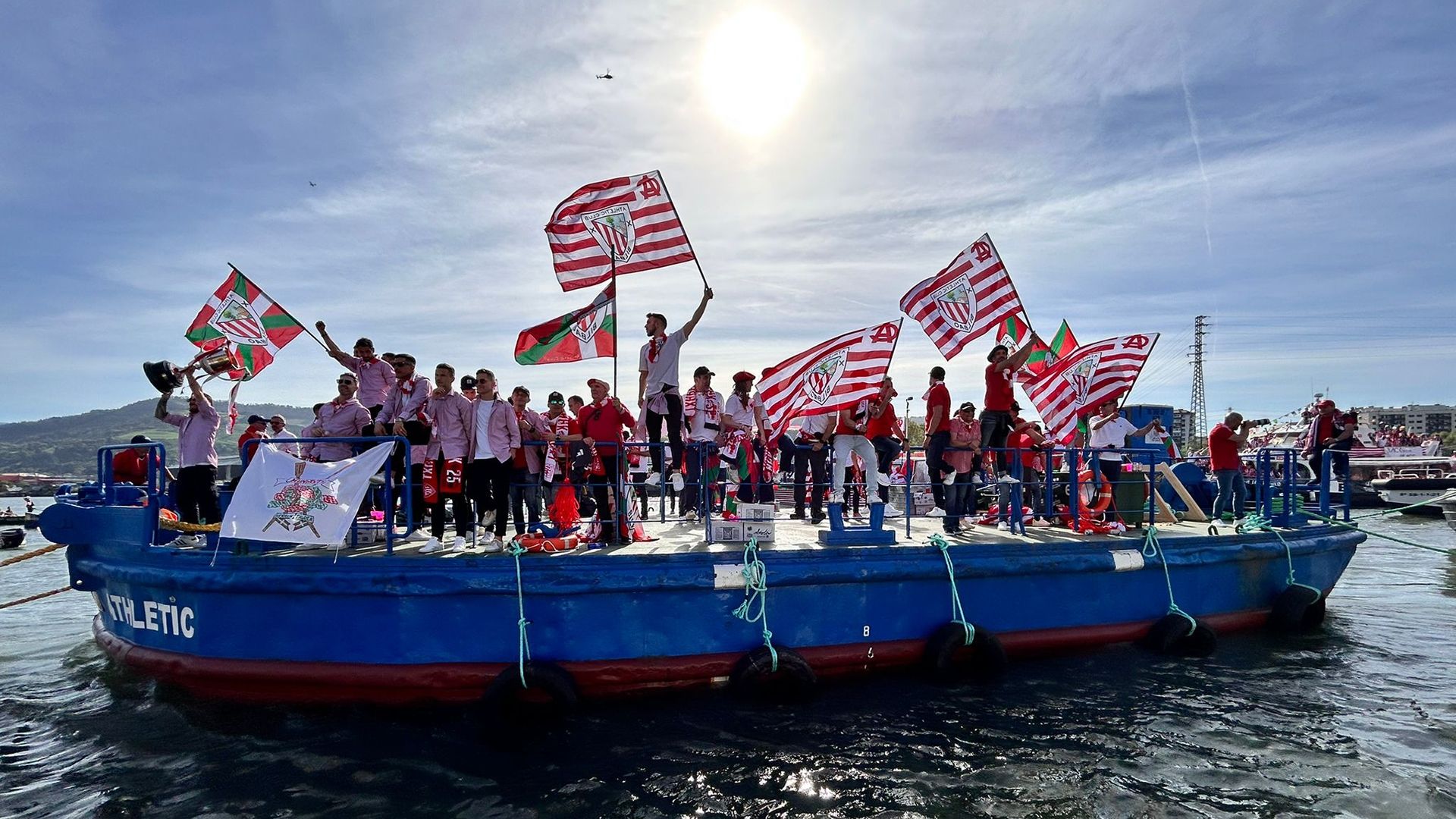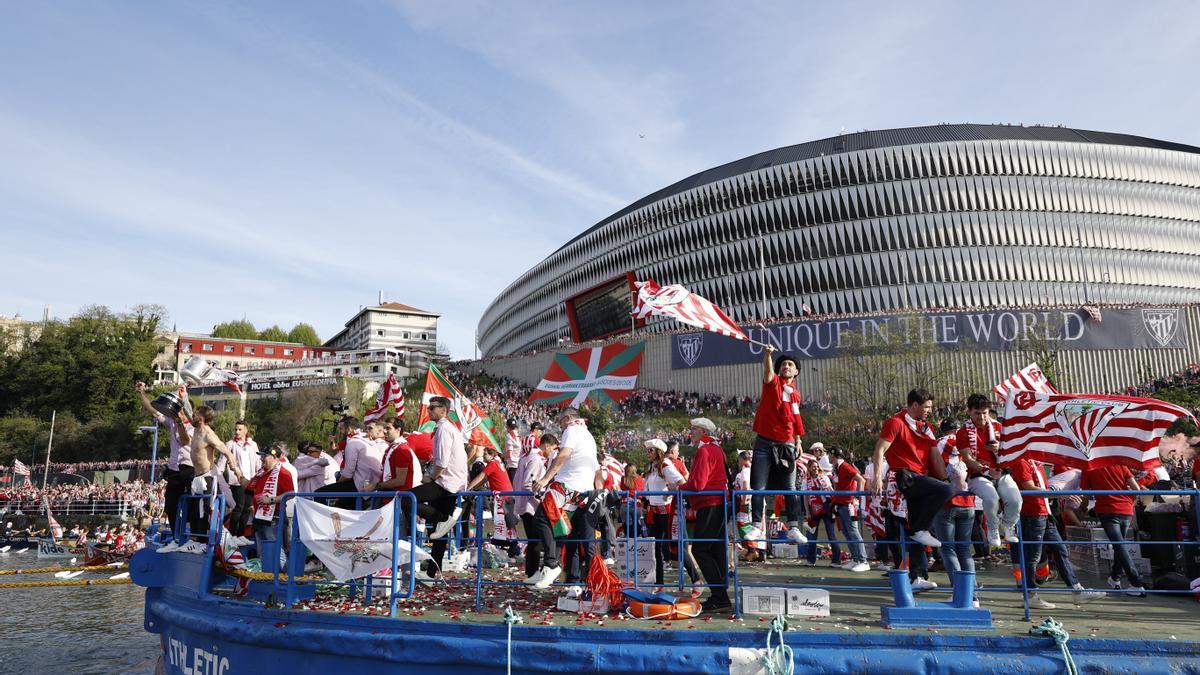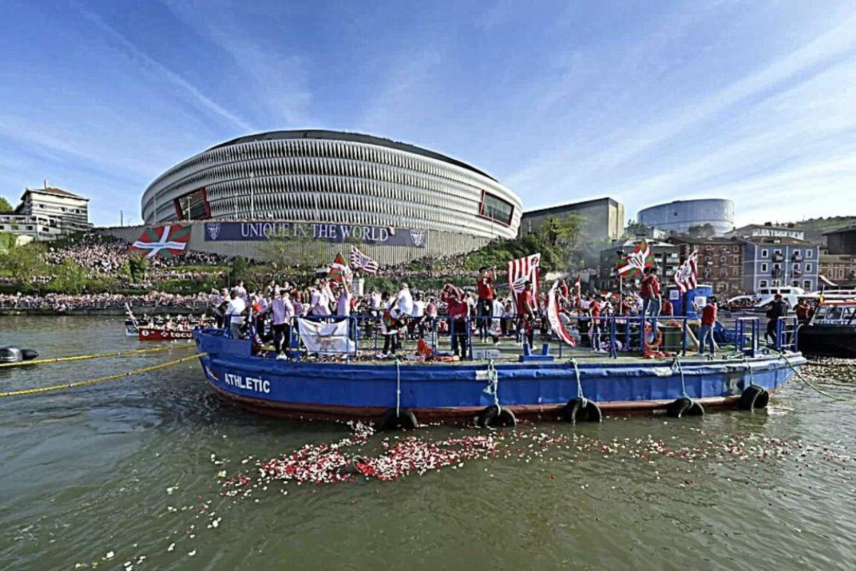 Y esta parece de cachondeo, porque las estelas blancas han teñido el cielo de txuriurdin en la celebración más importante del Athletic en los últimos 40 años.