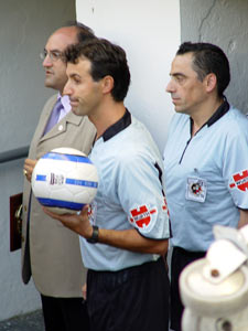 Salida conjunta al campo de equipos y árbitros